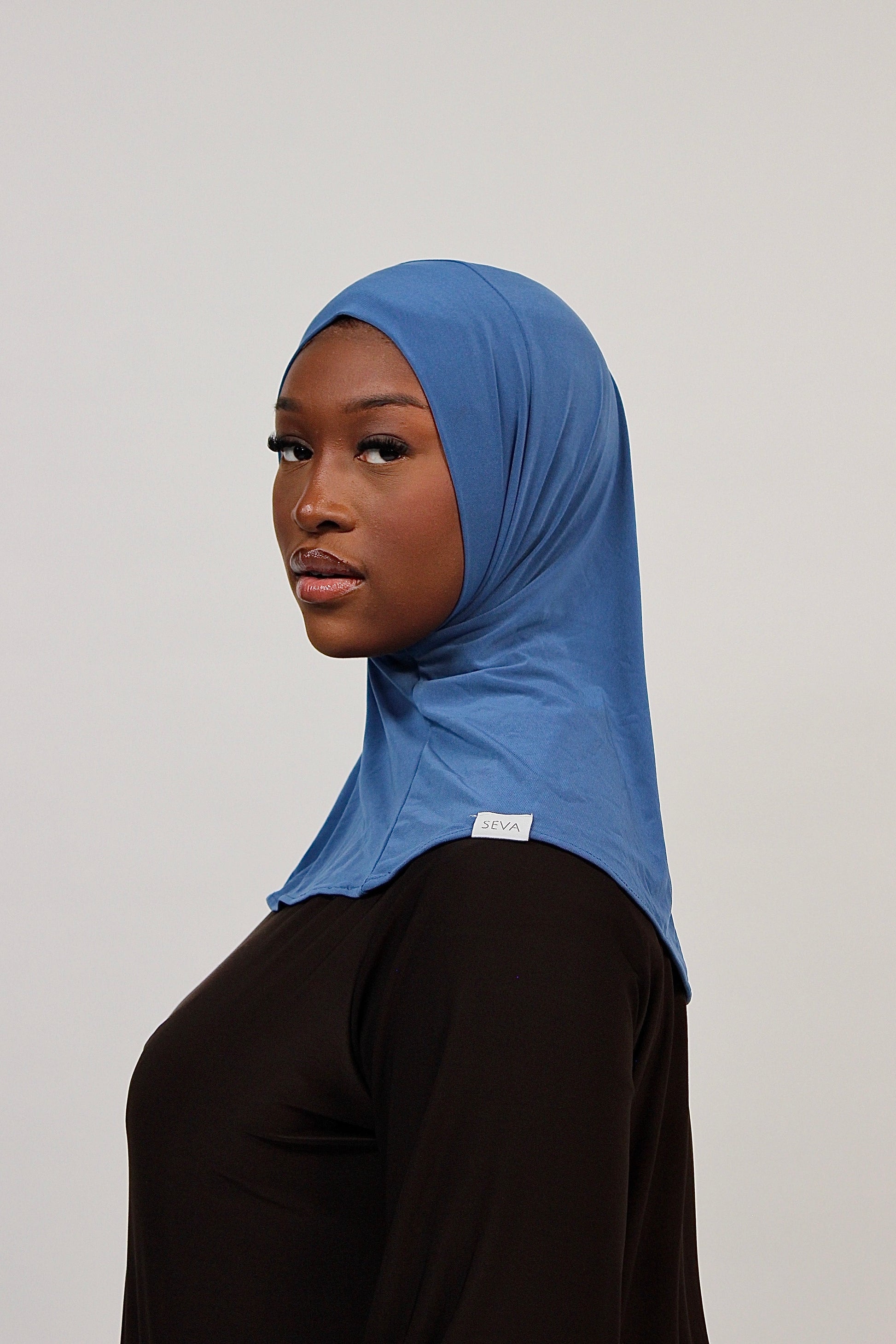 The hijab slips on easily and adapts smoothly to the shape of your head.